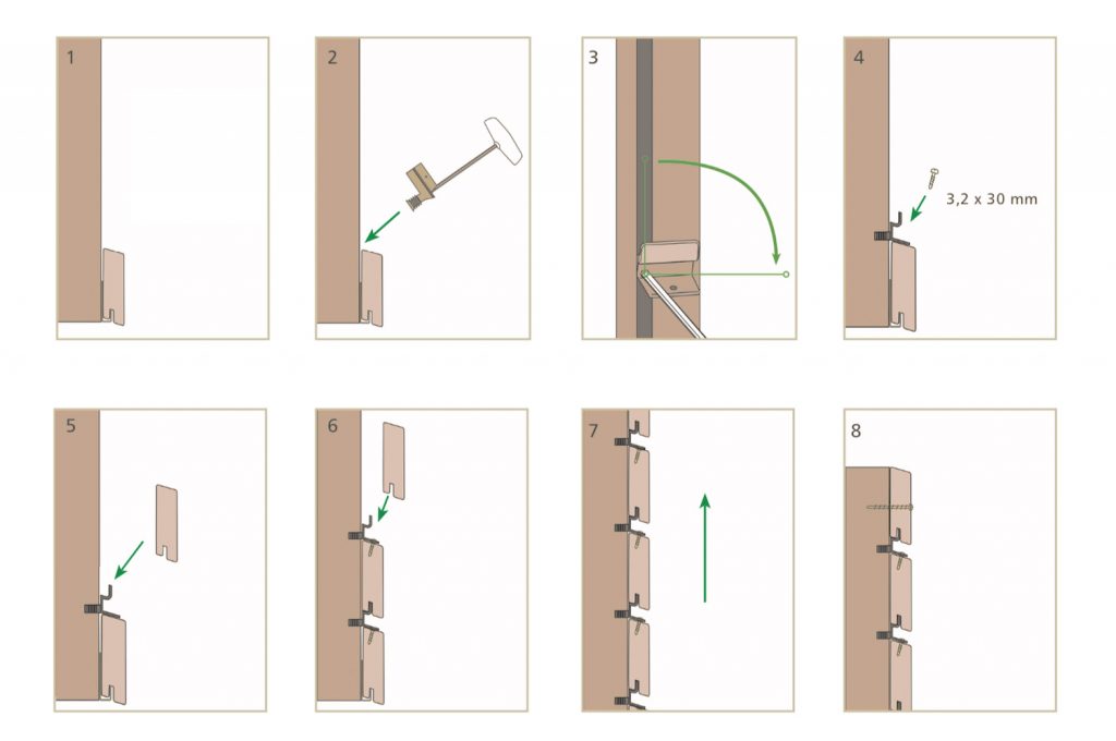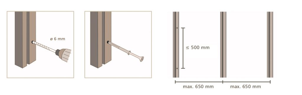 Compared to traditional fixing with visible screws, it is not necessary to mark the hole, make the pre-hole with a drill and mount the spacer between the profiles.
