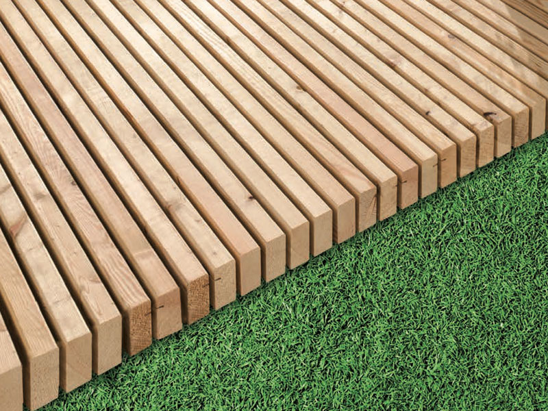 Biodeck-TRM wooden floors for terraces and pool edges are a natural product, beautiful in appearance, a lasting connection between building and lawn. Siberian larch with its fine structure and reddish-brown to light yellow appearance is suitable for outdoor installation even without wood treatment.