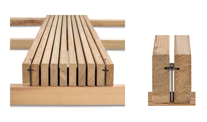 In some situations, when the subfloor is not stable, it is necessary to mount a subconstruction. But even in these cases, a minimal amount of preparatory work is sufficient. As a substructure, Biodeck-TRM only needs a suitably sized wooden profile, one meter long per piece. The expenditure on materials and labor is about half that of other conventional assembly methods and composite wood deck systems.